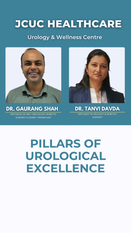 At JCUC, our pillars of excellence are Dr. Gaurang Shah and Dr. Tanvi Davda, distinguished urologists dedicated to advancing patient care. Dr. Shah brings unmatched expertise in Uro-Oncology, Robotic Surgery, Endourology, and Kidney Transplants, offering precision-driven treatments with compassion. Dr. Davda, with her strong academic background and robotic surgery training from IRCAD France,